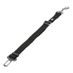 Tento praktický bezpečnostní pás pro psy značky Trixie slouží k bezpečnému připoutání zvířete během jízdy autem. Pomocí nastavitelné délky (v rozmezí 30–45 cm) jej snadno přizpůsobíte velikosti psa. Popruh o šířce 20 mm je vybaven kovovou karabinou a koncovkou kompatibilní s většinou typů automobilových bezpečnostních zámků. Před nákupem doporučujeme ověřit, zda konektor pásu odpovídá zásuvce ve vašem voze.