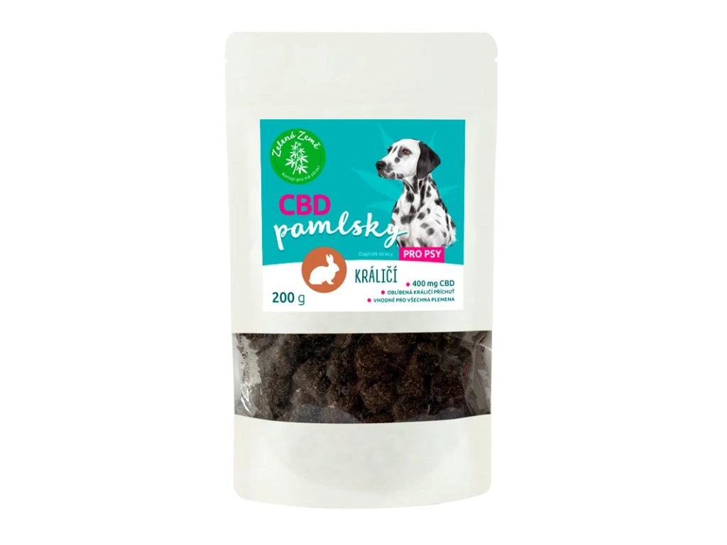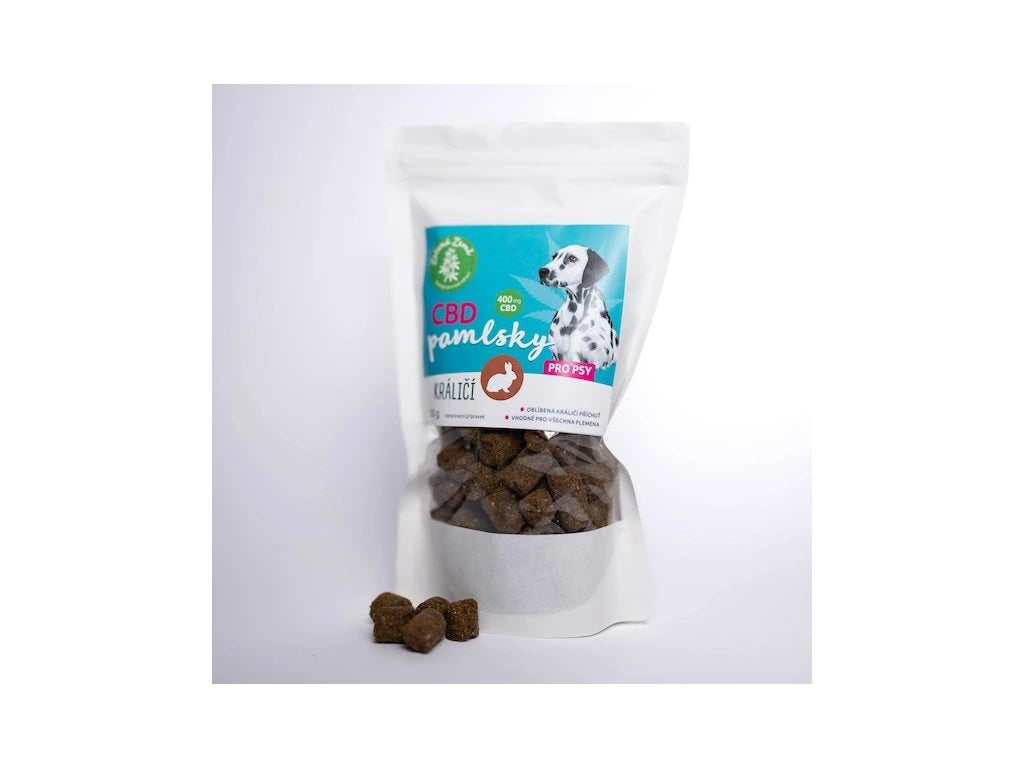 Přírodní pamlsky s CBD pro psy, kteří mají rádi masovou chuť králíka. Skvělá alternativa k podávání 5% CBD oleje – jeden pamlsek odpovídá účinkem jedné kapce oleje. Vhodné pro mazlíčky, kteří hůře přijímají olejové kapky.