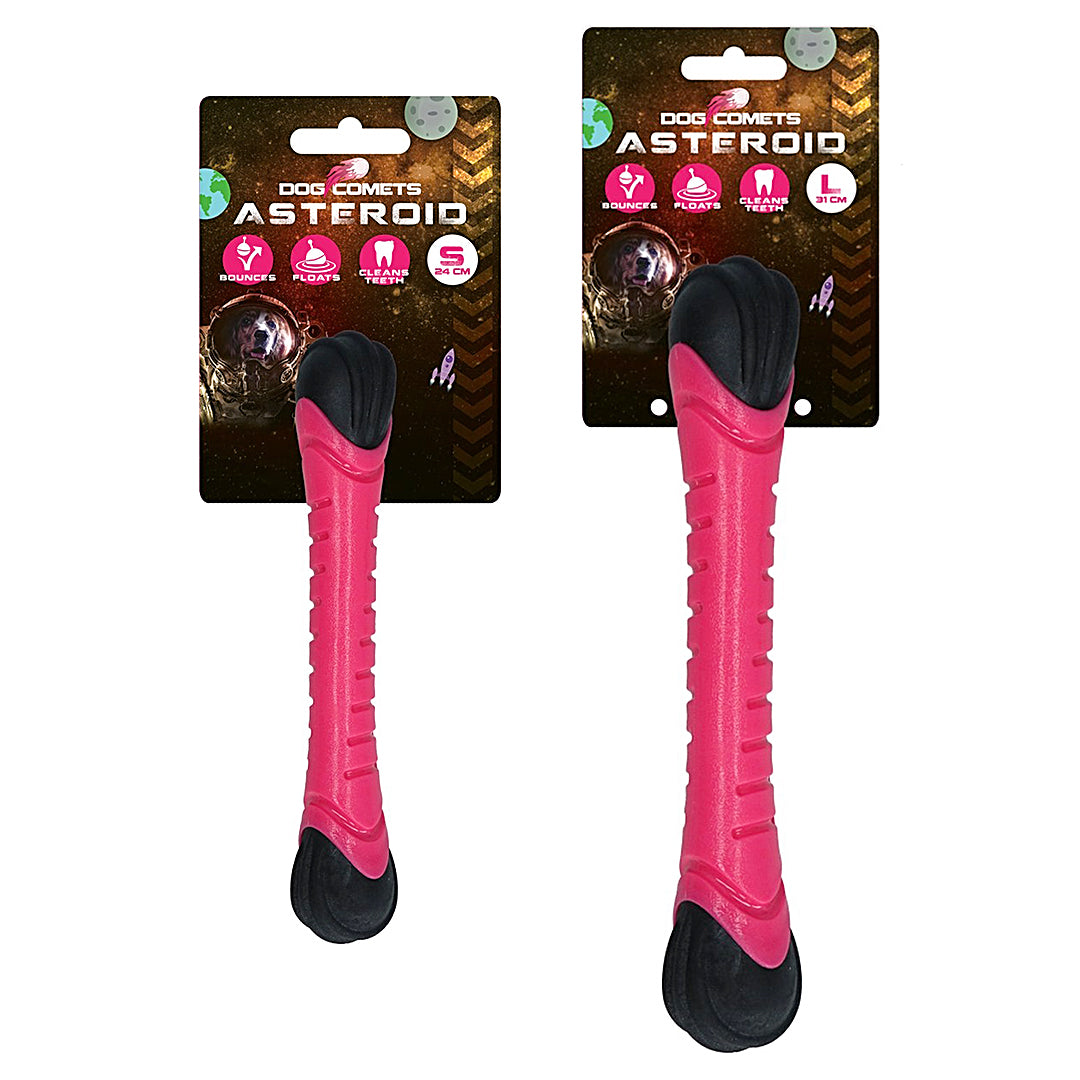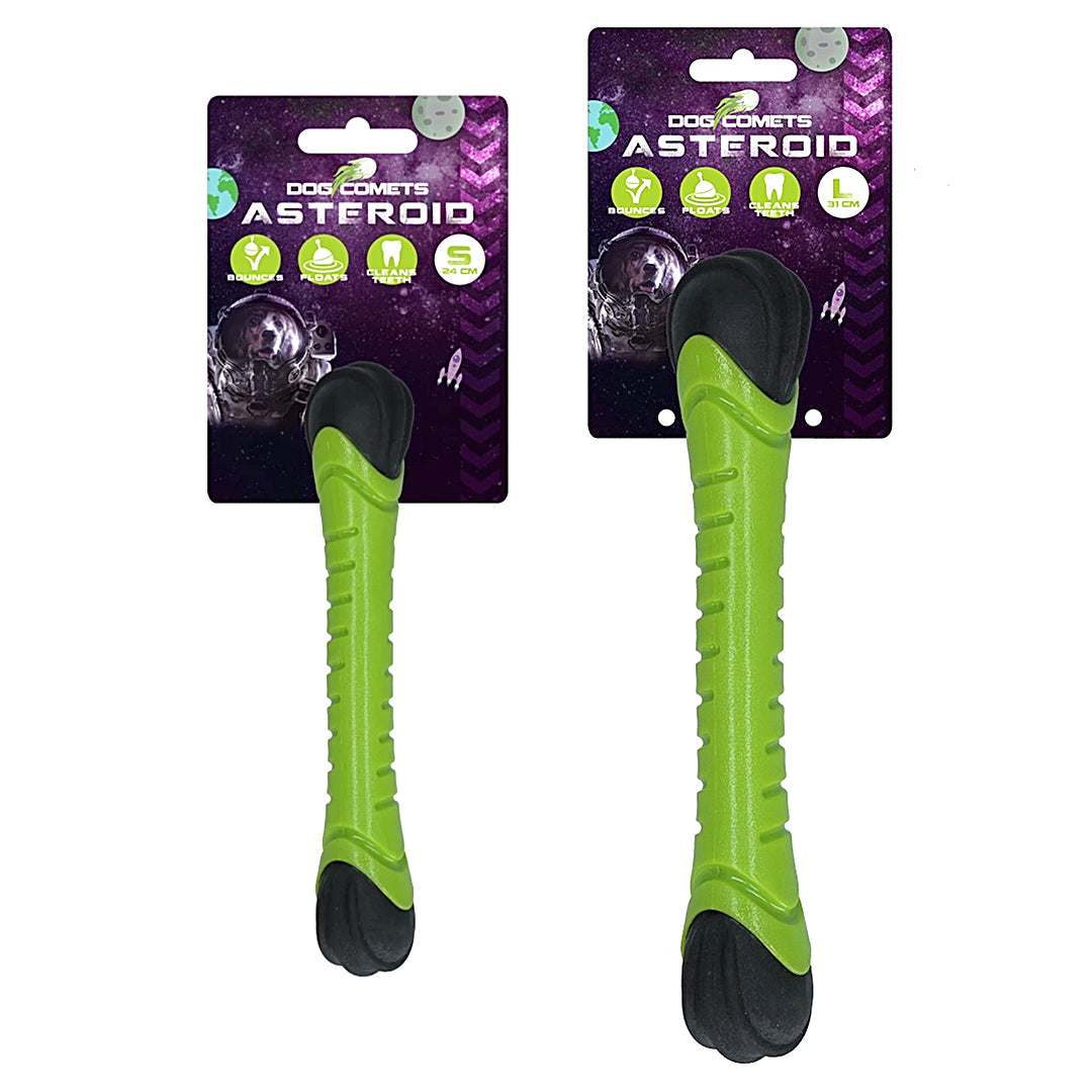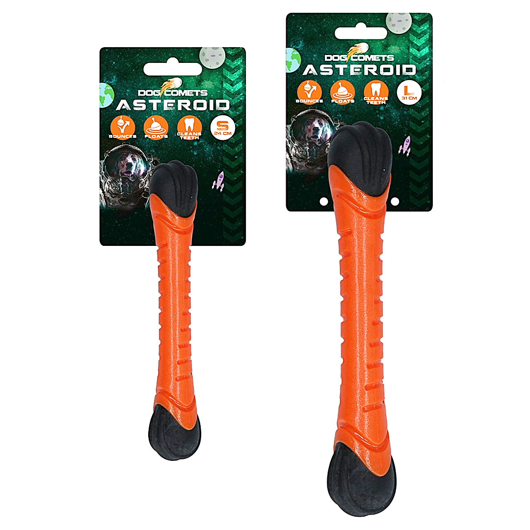 Aportovací tyč Meteor z kolekce Dog Comets je vyrobena z odolné a pružné gumy, která je navíc plovoucí, což z ní dělá ideální hračku pro letní i zimní radovánky s vaším psem. Při dopadu na zem se díky gumovému zakončení odrazí a může nečekaně změnit směr. Oranžový konec navíc při dopadu pískne, což udrží hru zajímavou. Aportovací tyč Meteor je bezpečná, neohrozí psa jako klacek a nehrozí nebezpečí zadření třísky. Díky své délce je vhodná i na přetahování.