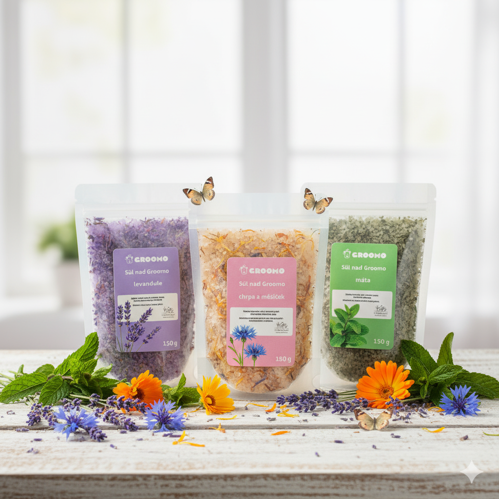 Přírodní sůl do koupele, která šetrně pečuje o pokožku vašeho pejska a přináší relaxaci při každé koupeli.
