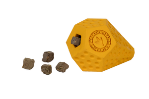 Extrémně pevná a bezpečná hračka z kvalitní gumy, ideální pro plnění mrazem sušenými pamlsky