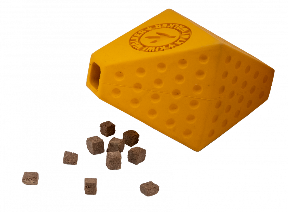 Pevná a bezpečná hračka z kvalitní gumy, navržená pro plnění mrazem sušenými pamlsky