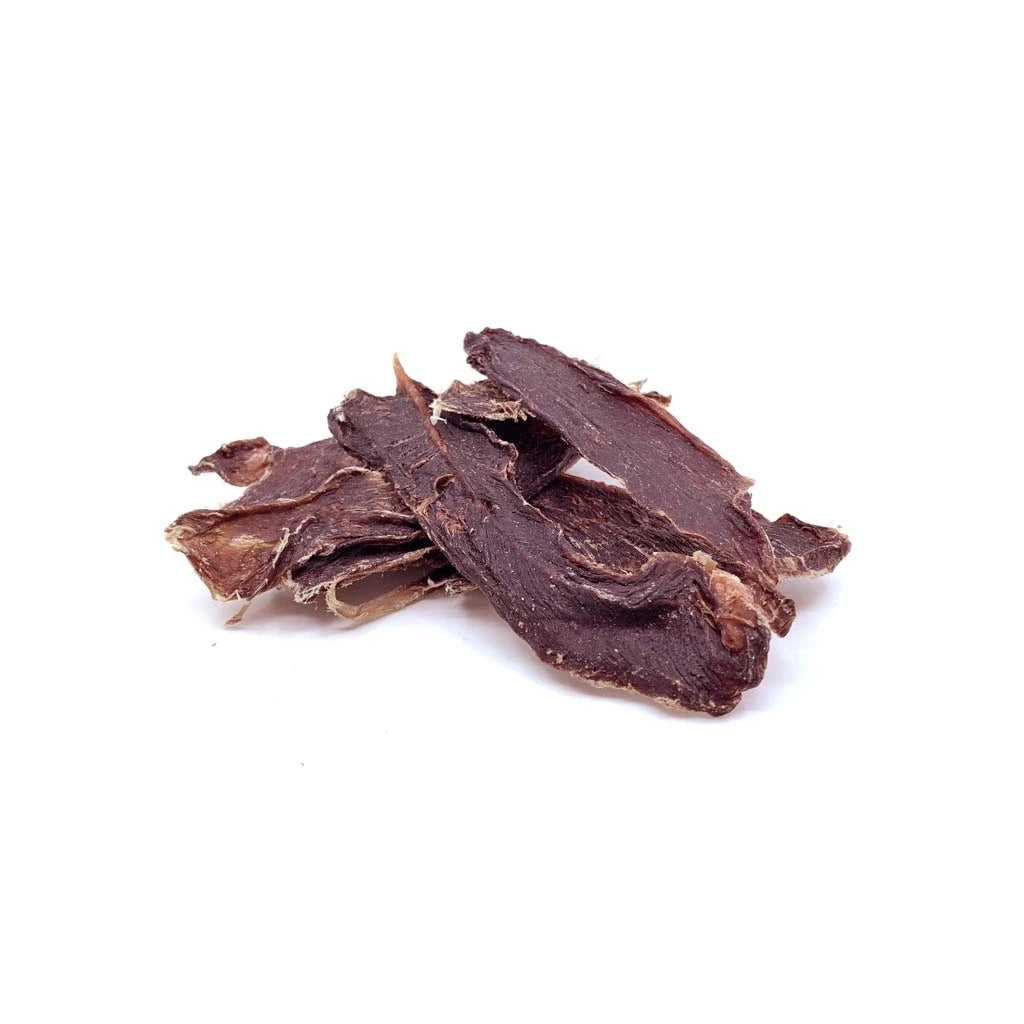 Delikátní jelení pamlsky pro psy, vyrobené z masa v potravinářské kvalitě. Neobsahují žádnou přidanou sůl, umělé přísady ani konzervanty. Maso pochází z české volně žijící zvěře – nikdy z farem ani velkochovů.