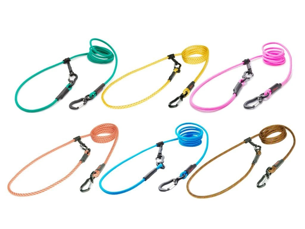Lehké ručně vyráběné vodítko s posuvným systémem a dvěma karabinami