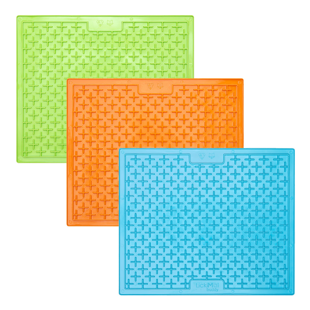 Představujeme LickiMat Buddy, lízací podložku navrženou pro střední a velká plemena, která podpoří lepší trávení, zajistí dlouhotrvající zábavu a přinese nový chuťový zážitek. Její povrch je pokryt výstupky ve tvaru „+“, které psovi ztíží získání dobrot a prodlouží radost z krmení.