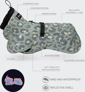 Obleček pro psa Paikka Visibility Winter, zelený leopardí vzor