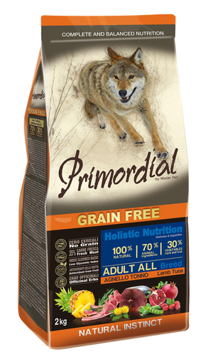 Primordial jehněčí a tuňák je prémiové kompletní krmivo pro psy bez obilovin, vytvořené tak, aby zajistilo vyváženou a zdravou stravu. Kombinace čerstvého jehněčího masa z volného chovu a tuňáka poskytuje vysoce kvalitní bílkoviny s ideálním profilem aminokyselin a lahodnou chuť, která potěší i ty nejnáročnější psy.