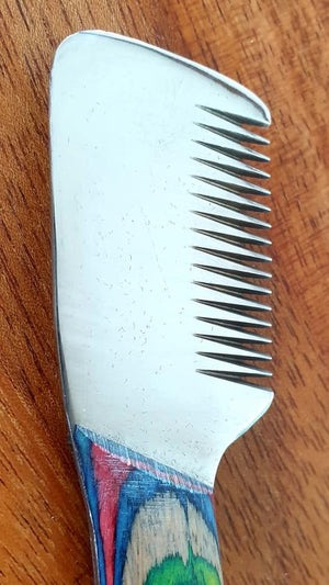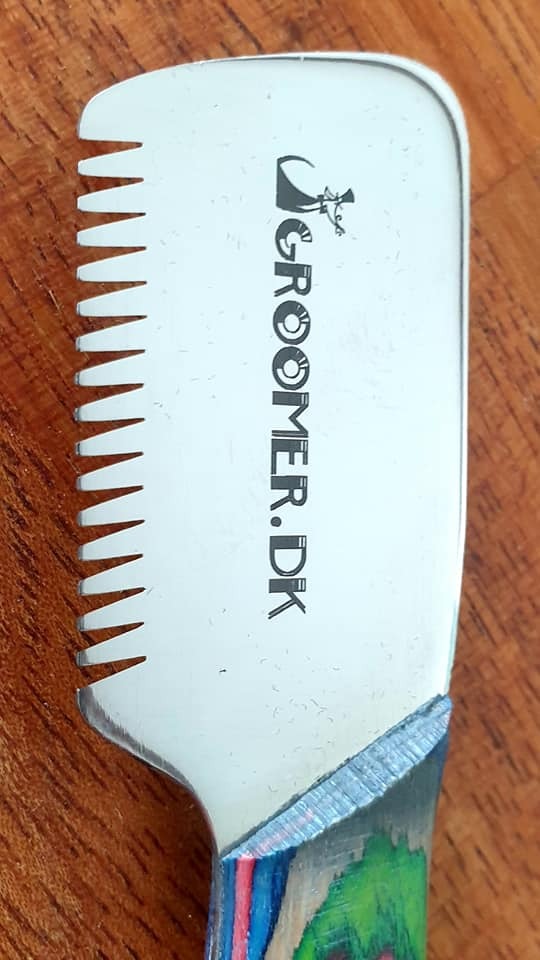 Profesionální dánský trimovací nůž Groomer DK z Rainbow edice s hrubými, sešikmenými zuby je navržen pro maximální efektivitu a pohodlí při práci. Nová generace této edice přináší upravené tvarování a polohu rukojeti, které zajišťují lepší úchop a vyšší účinnost při trimování.