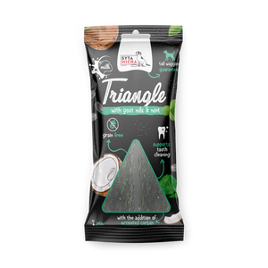 Trojúhelník z rybí kůže a mořské řasy je skvělá svačinka neobvyklého tvaru, obohacená o důležité mikroelementy. Pejsek si při žvýkání, kousání a žužlání nejen splní své přirozené potřeby, ale zároveň přispěje ke svému zdraví.